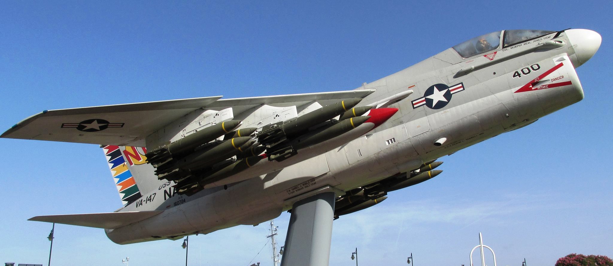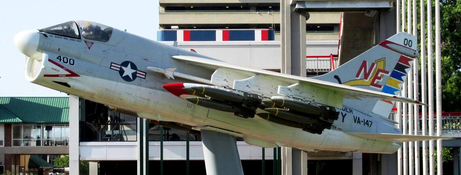LTV A-7E Corsair II (BuNo. 160724), C/N E-502, VF-147, mounted on a pylon at the Vietnam War Memorial Park.
