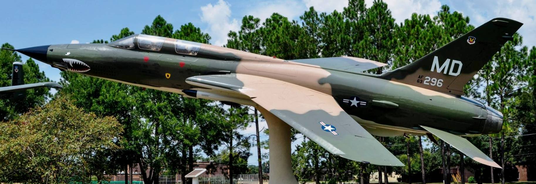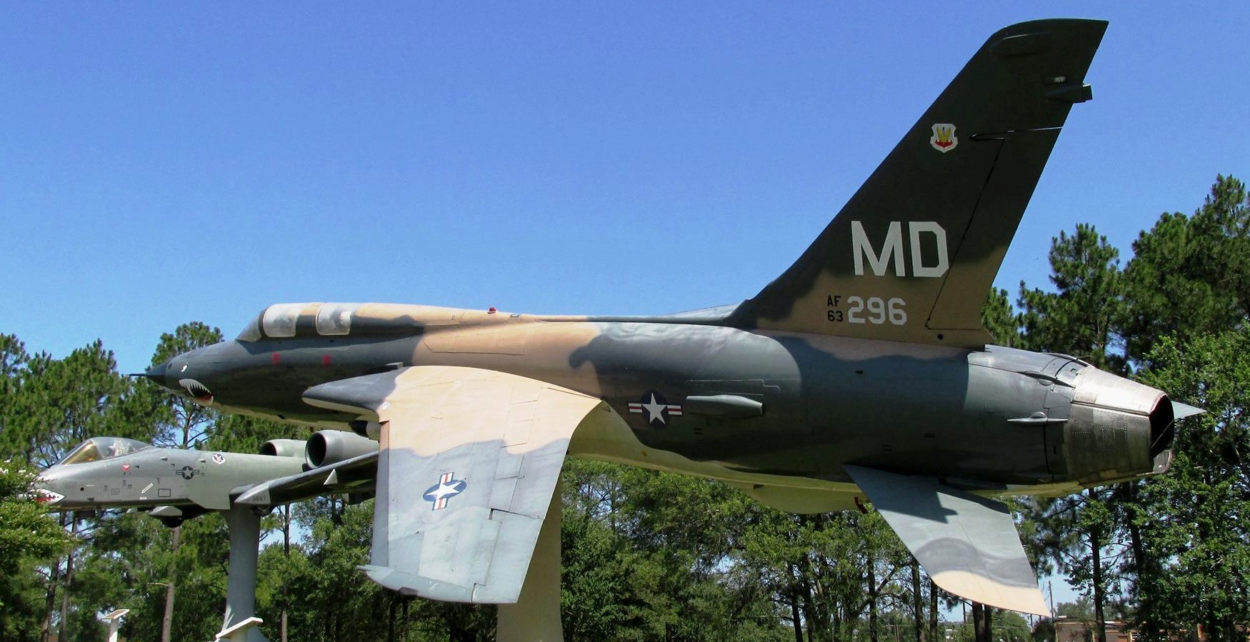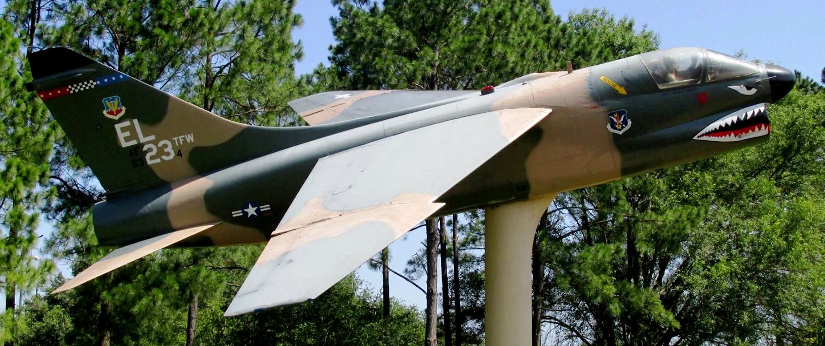 Republic F-105G Thunderchief (Serial No. 63-8296), C/N F073, mounted on a pylon.