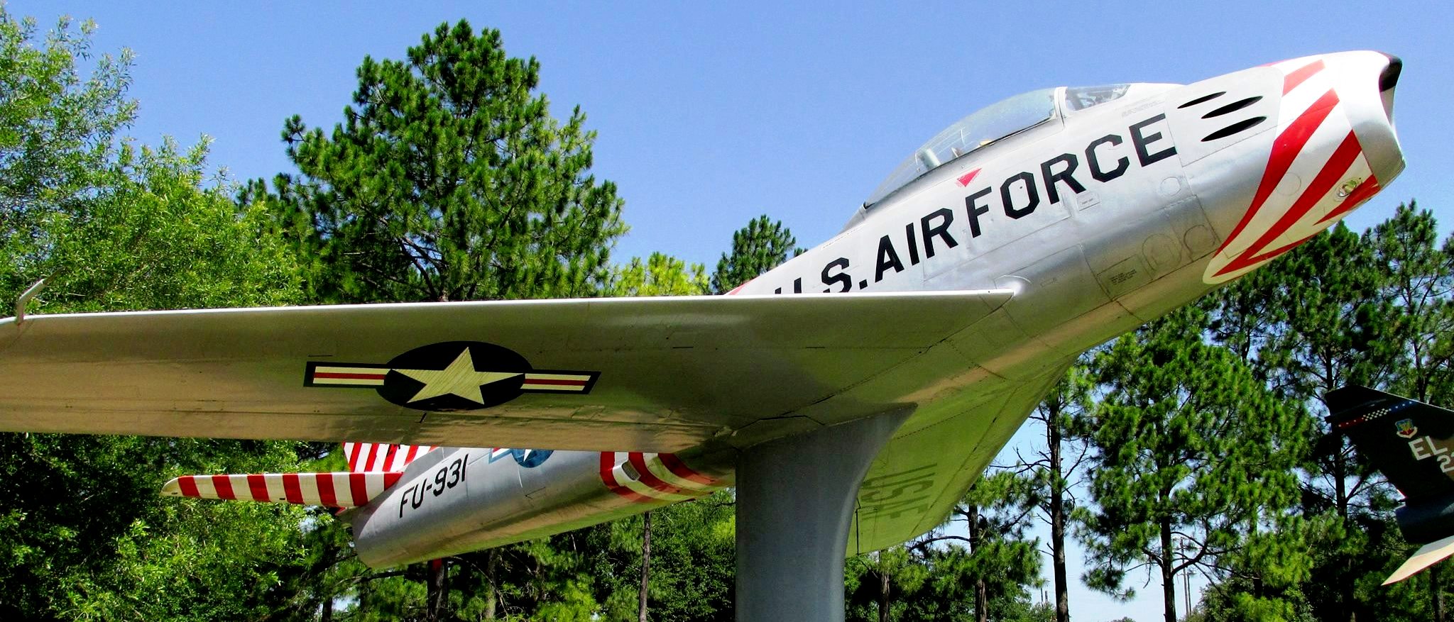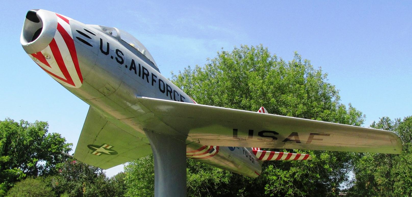 Canadair CL-13A Sabre (Serial No. 23266), painted as North American F-86E Sabre (Serial No. 52-4931), flown by LCol John England, mounted on a pylon.