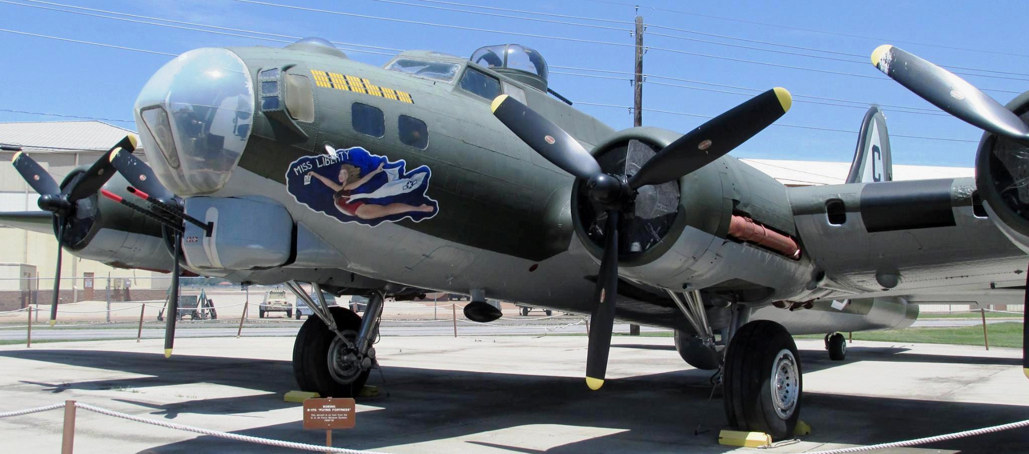 Boeing B-17G Flying Fortress (Serial No. 44-83884), “Miss Liberty“, D. This aircraft was completed in July 1945 by the Douglas Aircraft Company under contract with the Boeing Company. Initially assigned to the USAAF, it was transferred to the US Navy (BuNo. 77244) and designated as a PB-1W submarine hunter, serving from 1945 to 1956. From 1960 until 1977 it served as a firebomber (Air Tanker No. 19) with the Aero Union Corporation in California. It was flown to Barksdale on 11 April 1978. It was painted as “Yankee Doodle II” before becoming “Miss Liberty”.