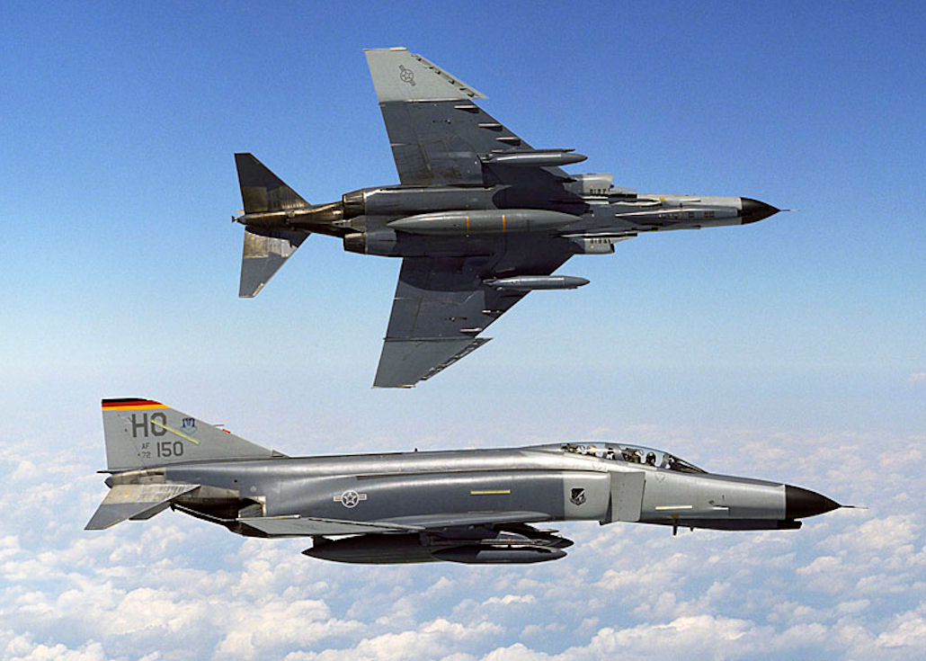 Two U.S. Air Force McDonnell Douglas F-4E-41-MC Phantom II aircraft (68-0512, 68-0526) assigned to the 512th and 526th Tactical Fighter Squadrons, 86th Tactical Fighter Wing, fly one of their last aerial missions on 20 March 1985. Both squadrons from Ramstein Air Base, Germany, replaced their Phantoms with F-16 Fighting Falcon aircraft. 68-0512 was piloted by Lieutenant Colonel Bruce Gillett and navigated by Captain Mike Craig. LtCol Tom Speelman was piloting 68-0526 with 1st Lieutenant John Rogers navigating.