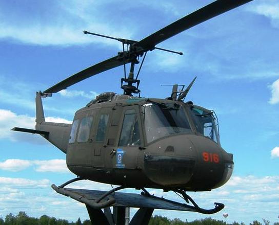 Bell UH-1 Iroquois Helicopter (Serial No. —916), mounted on a pylon, American Legion Post 247.