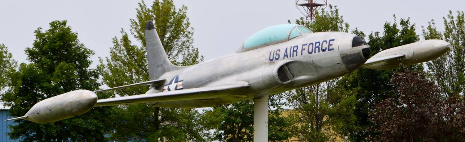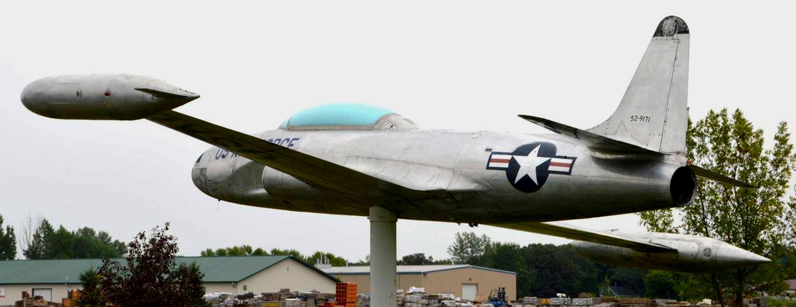 Lockheed F-94C Starfire (Serial No. 51-3560), mounted on pylons, American Legion Post 247 near the Ironworld Discovery Center.