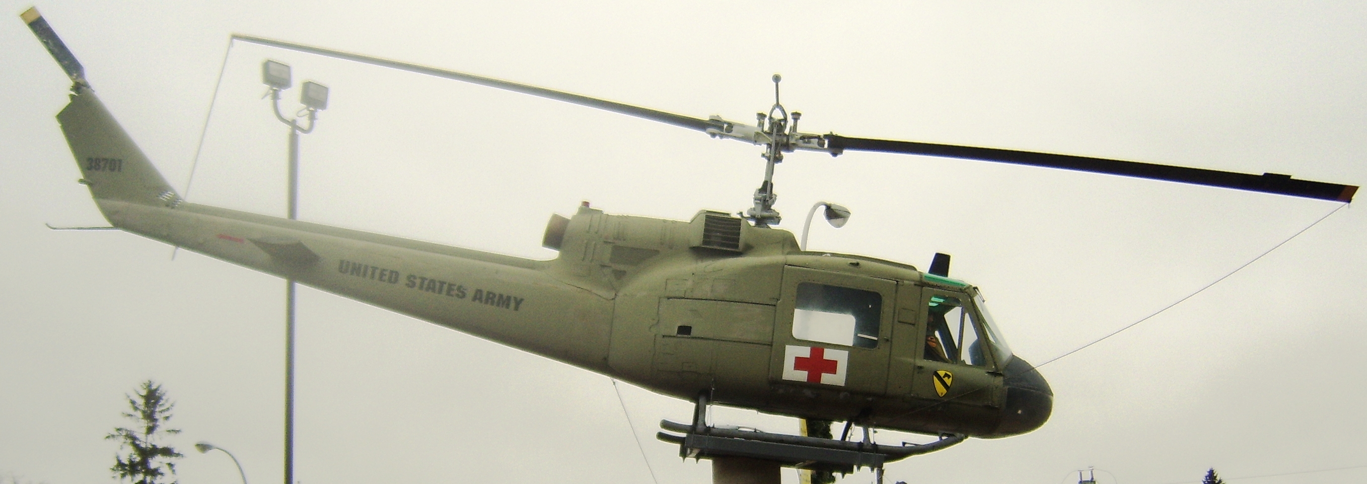 Bell UH-1B Iroquois Helicopter (Serial No. 38701), Air Ambulance, mounted on a concrete pylon.