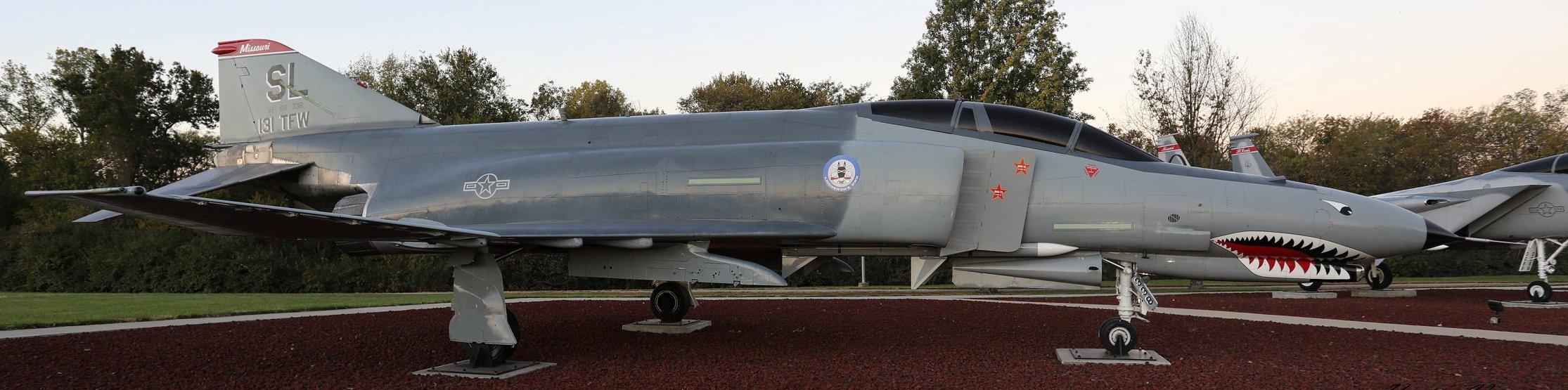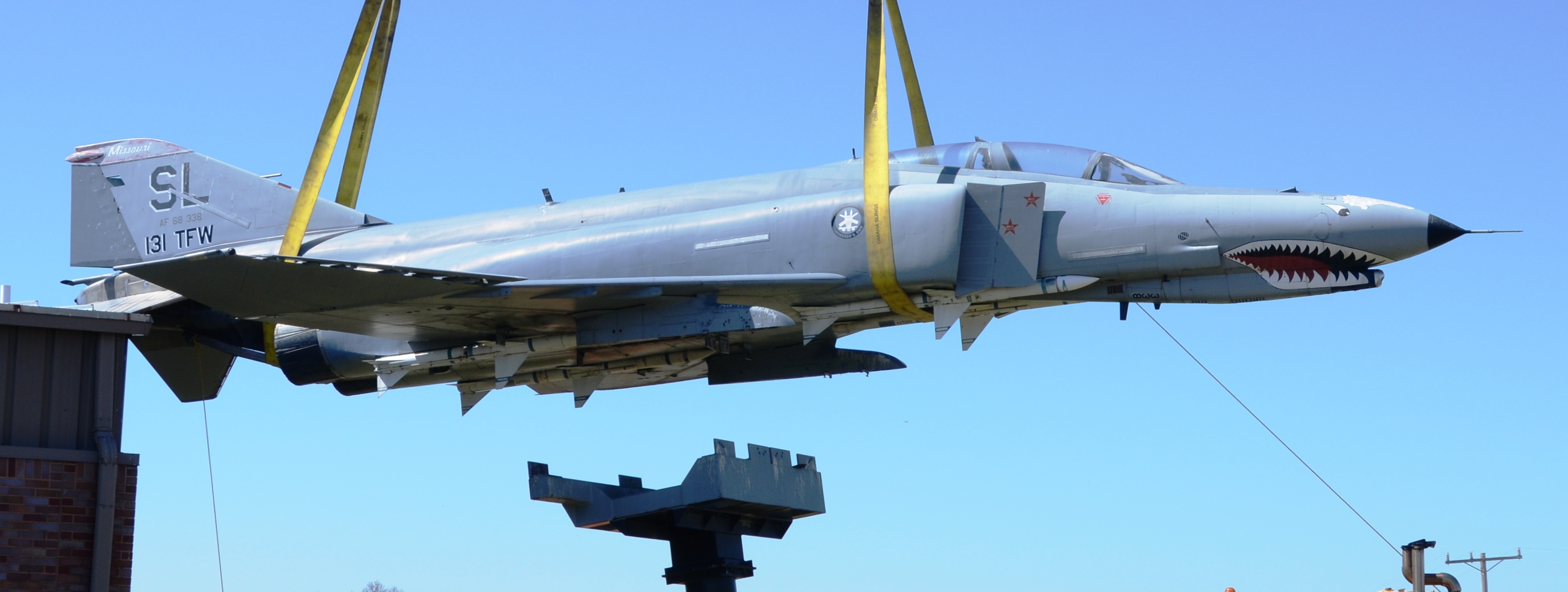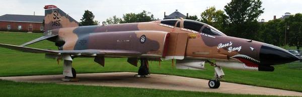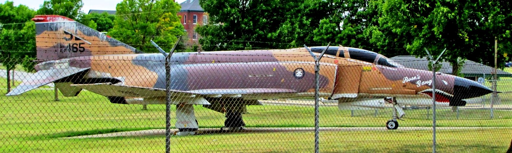 McDonnell Douglas F-4E Phantom II (Serial No. 68-0465), “Rose’s Bang“, two MiG kills, previously mounted on a pylon at Jefferson Barracks.