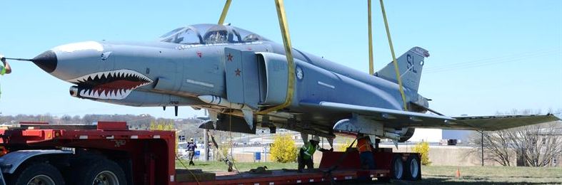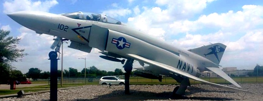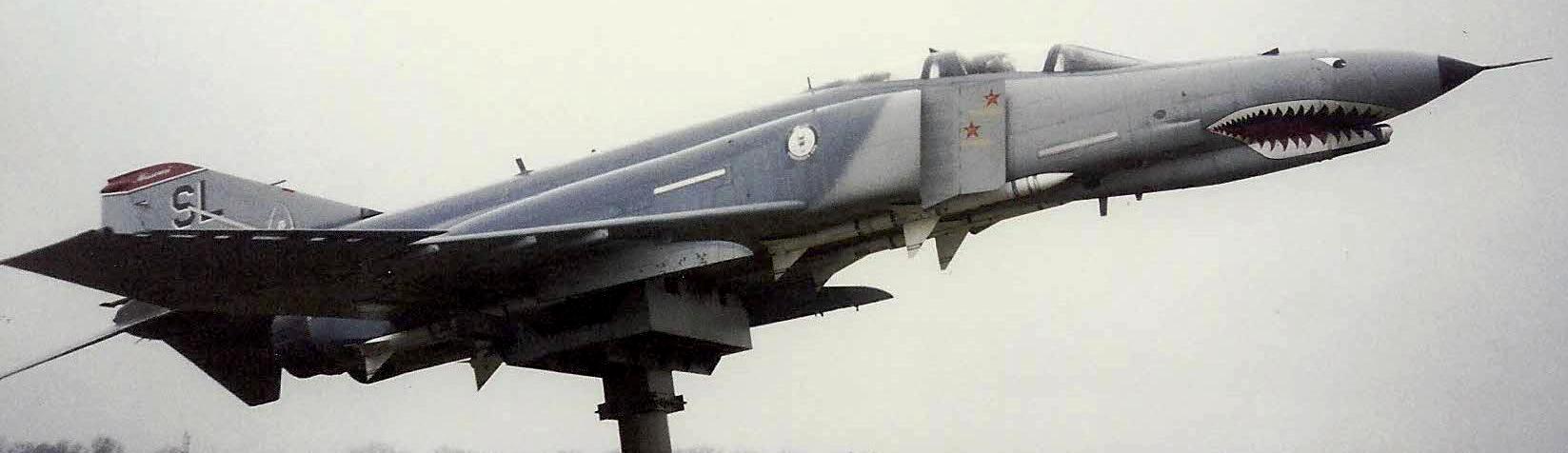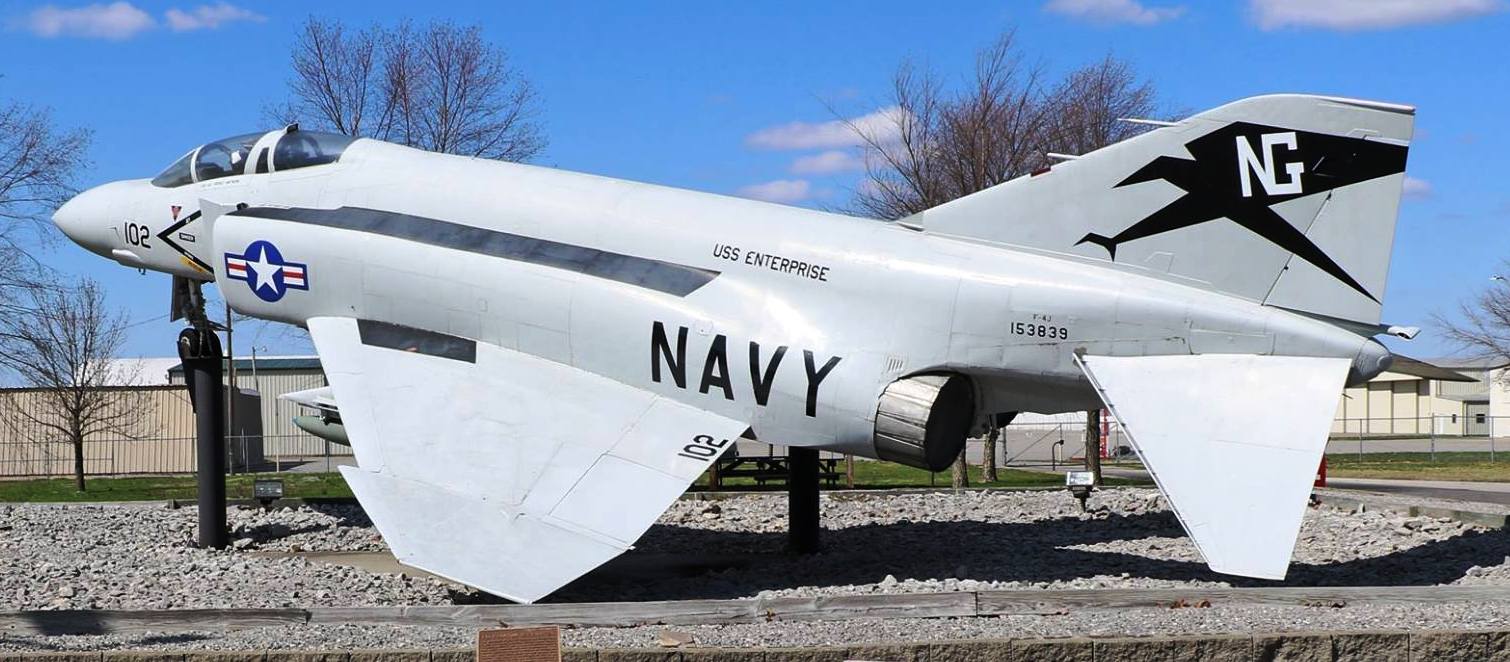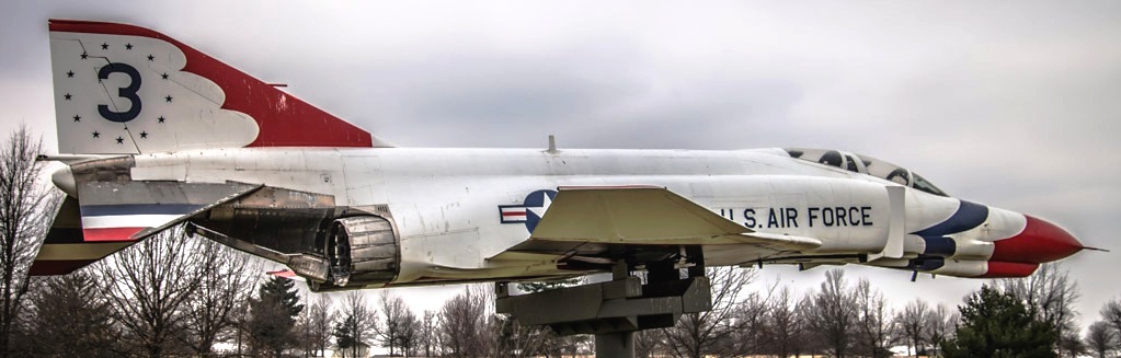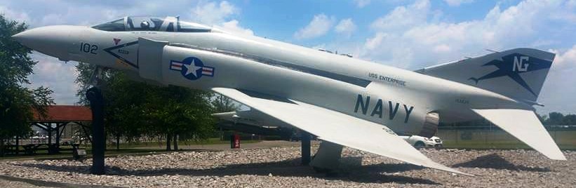 McDonnell Douglas F-4E Phantom II (Serial No. 68-0465), “Rose’s Bang“, two MiG kills, previously mounted on a pylon at Jefferson Barracks.