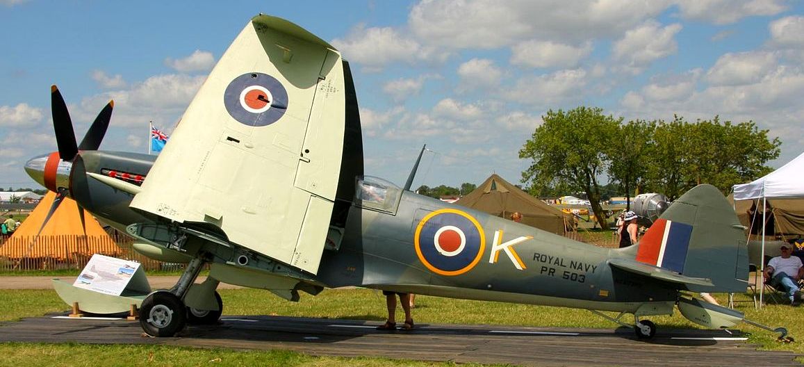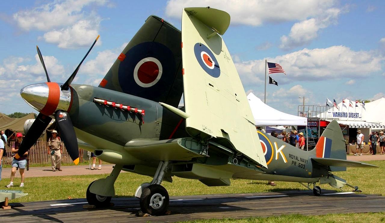 Supermarine Seafire F Mk. XV, RN (Serial No. PR503), Reg. No. N503PR. Owned by Wes Stricker and based at Columbia, Missouri. Potentially airworthy but not flown for some time.  She wears the codes PR503 / -K to replicate the markings she wore whilst serving with Royal Canadian Navy No. 803 Squadron during the late 1940s.