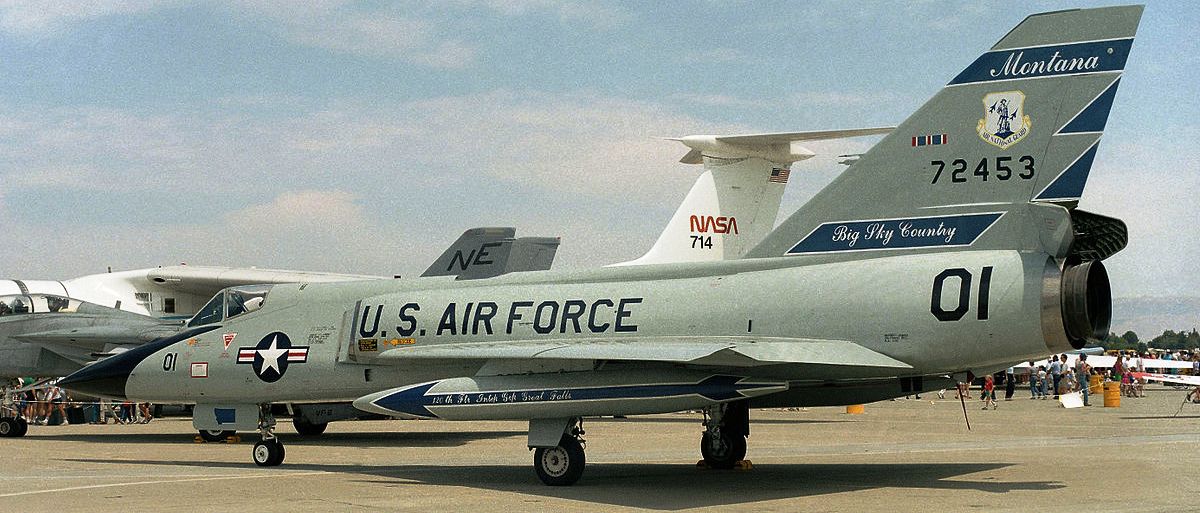 Convair F-106A-64-CO Delta Dart (Serial No. 57-2453) from the 186th Fighter-Interceptor Squadron, 120th Fighter Interceptor Group, Montana Air National Guard, 3 July 1985.