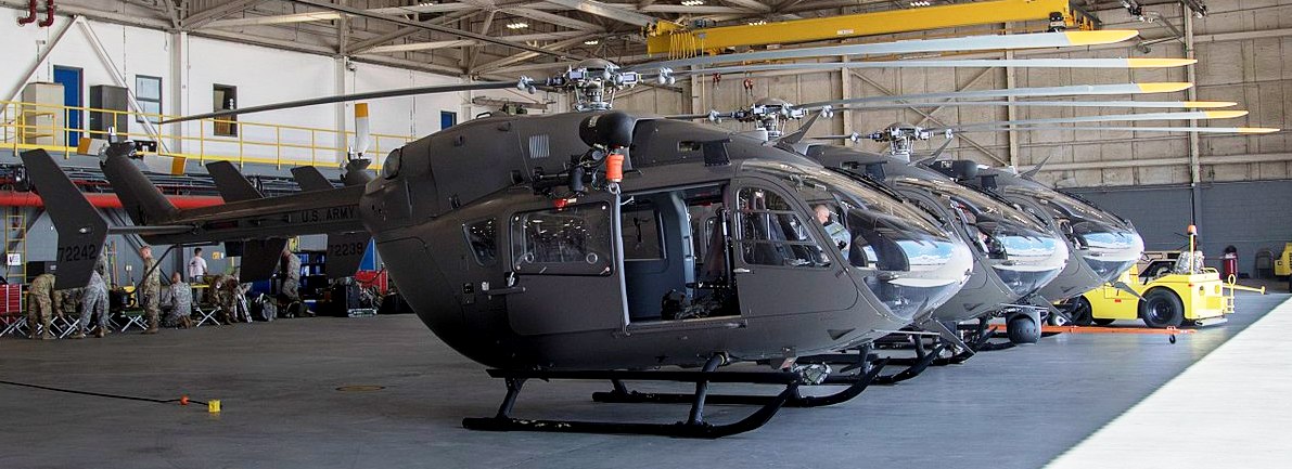 Nebraska Army National Guard’s 1-367th Aviation Regiment (Security and Support) move the blades of three Nebraska UH-72 Lakota helicopters in together to make more space for other aircraft, 12 Sep 2017.
