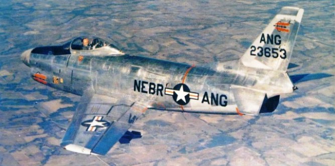 North American F-86D-40-NA Sabre (Serial No. 52-3653), 173d Fighter-Interceptor Squadron, Nebraska Air National Guard, ca 1957.