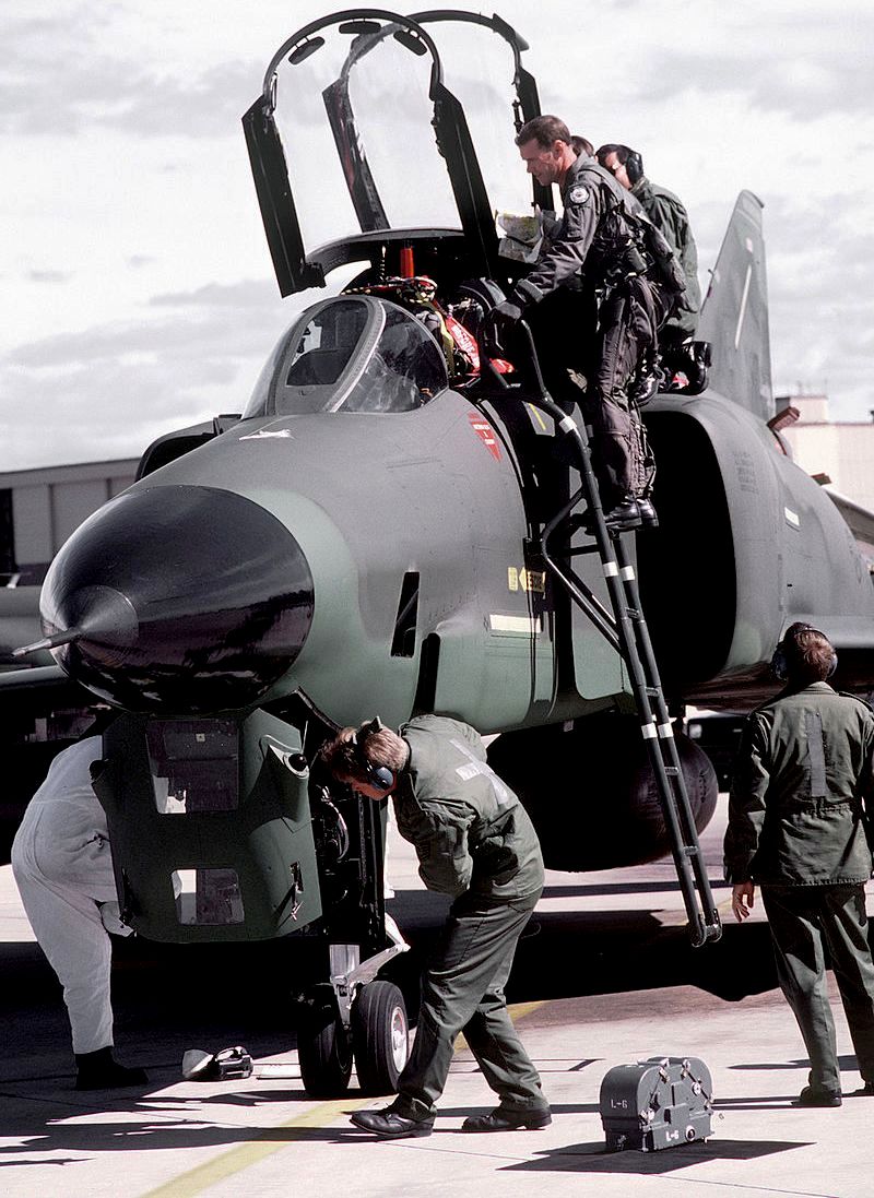McDonnell RF-4C Phantom II, 173rd Tactical Reconnaissance Squadron, 155th Tactical Reconnaissance Group, Nebraska Air National Guard, being maintained during “Reconnaissance Air Meet ’86”, November 1986.