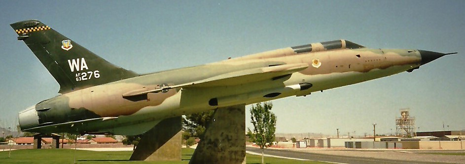 Republic F-105G Thunderchief (Serial No. 63-8276), WA, C/N F53, 57 FW/LG, mounted on a pylon in Freedom Park.