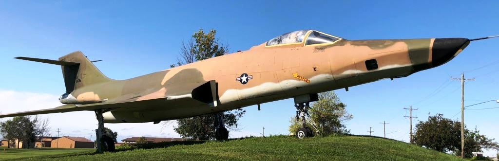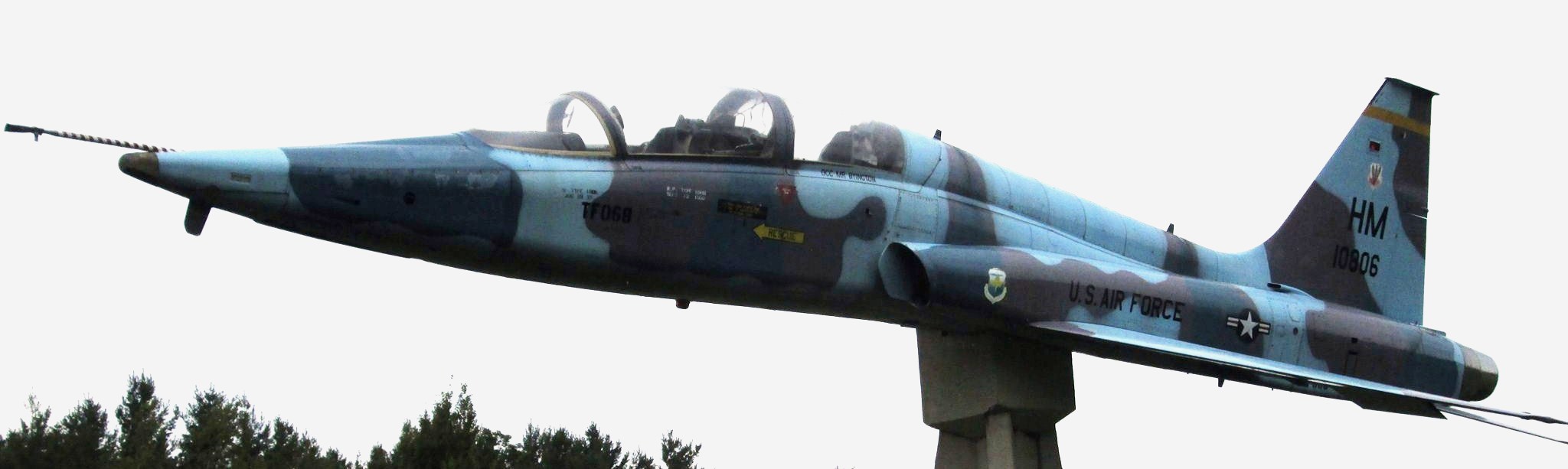 Northrop T-38A Talon (Serial No. 61-0806), HM, C/N N5172, mounted on a concrete pylon.  This aircraft is in the markings of the 436th Tactical Fighter Training Squadron of the 479th Tactical Training Wing, based at Holloman AFB, NM. The aircraft carries the base code HM, indicating the T38 training squadrons (3) that were based there.