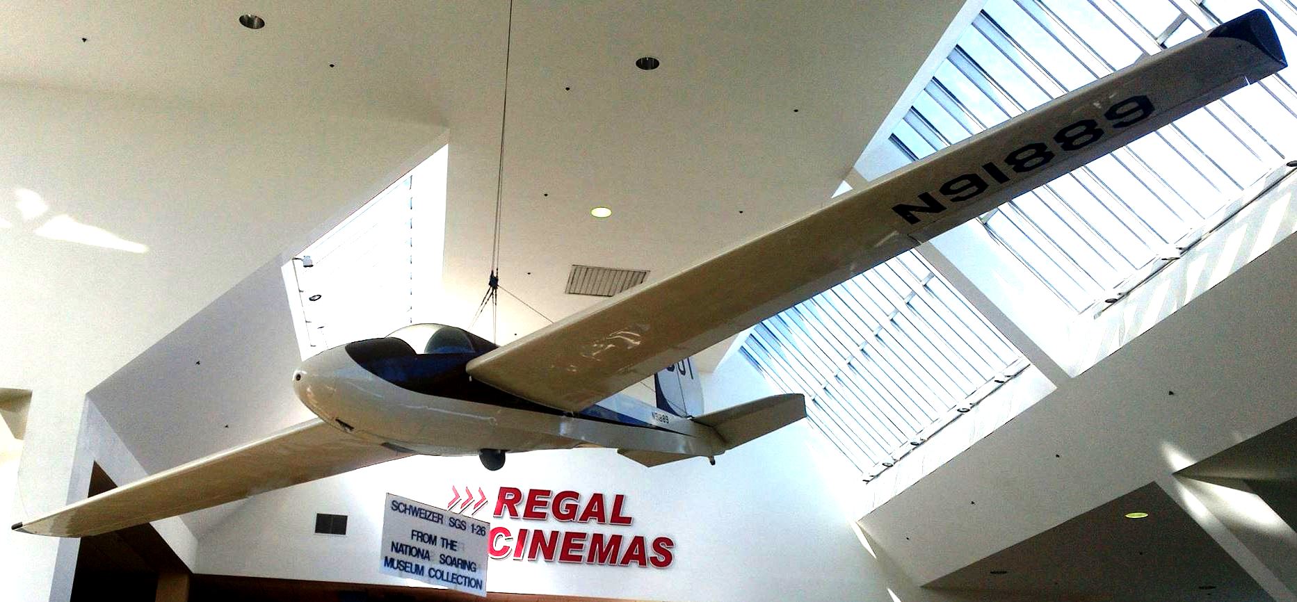 Schweitzer SGS 1-26 Glider, Reg. No. N91889, hanging in the Arnot Mall.
