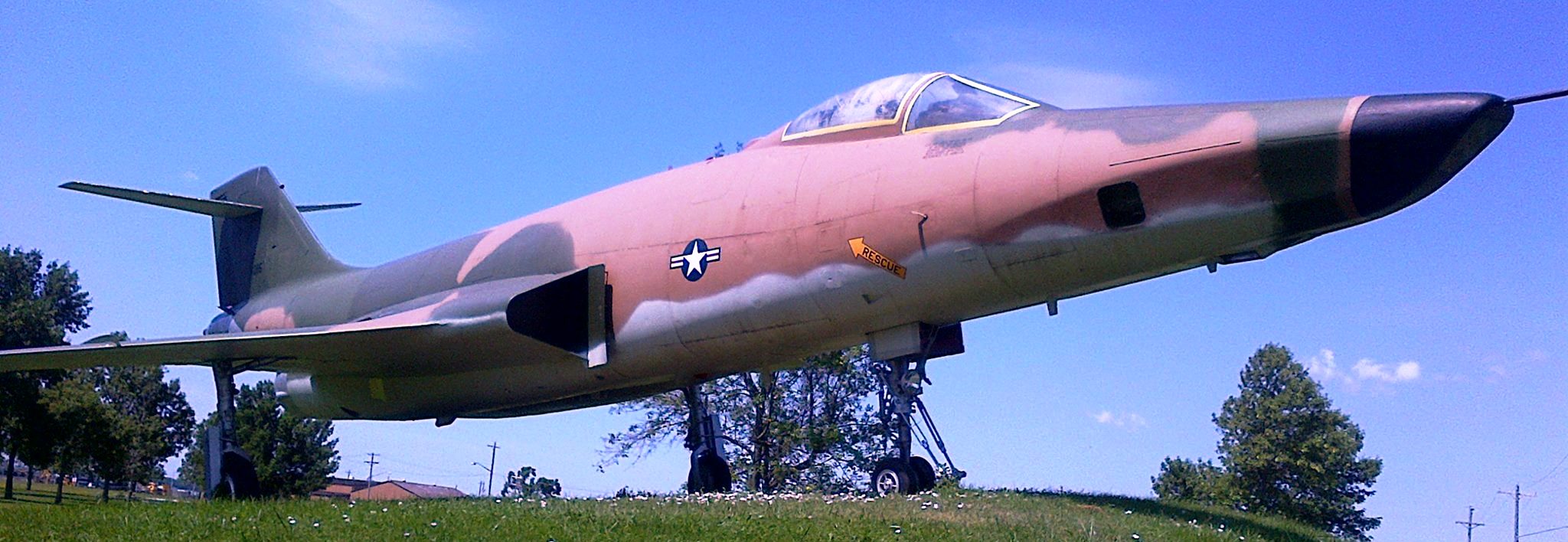 Grumman F9F-6P Cougar (BuNo. unknown), city park static display, on loan from the Philadelphia Naval Museum.  The aircraft has been on display since 1959 and in 2009 was refurbished when the new Town of Tonawanda Veterans Memorial was created.