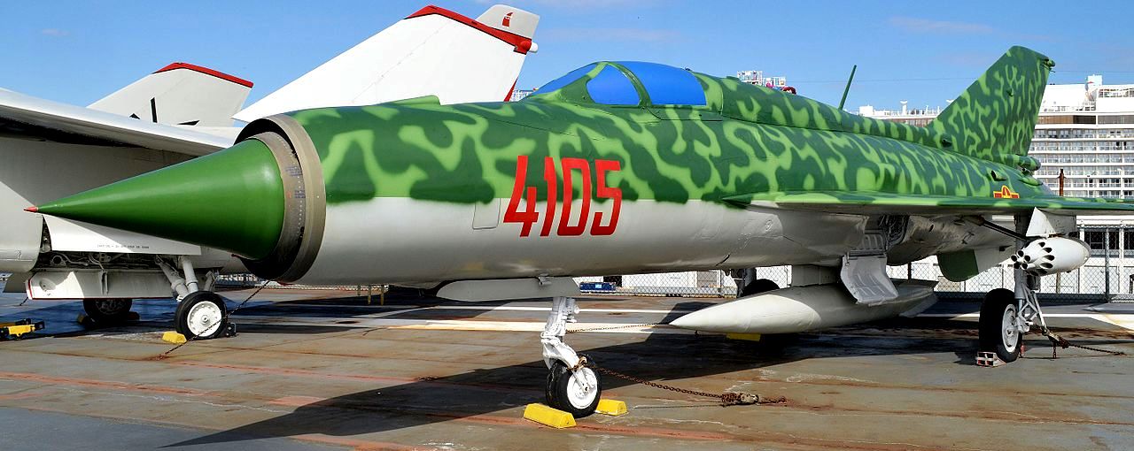 Mikoyan-Gurevich MiG-21PFM Fishbed J (Serial No. 4105), C/N 94A4105. This aircraft is a Polish MiG-21 which flew with the 10th Interceptor Regiment, charged with the defence of Warsaw. It was painted in the colours of the Polish fighters participating in the NATO Tiger Meet. It is currently on display in false Vietnam People’s Air Force (NVAF) markings.