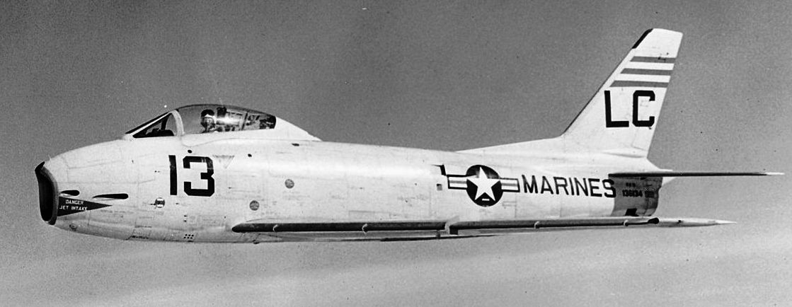 North American FJ-3 Fury fighter (BuNo 136134) from Marine Fighter Squadron VMF-122 Crusaders, 30 July 1956. (NMNA Photo)