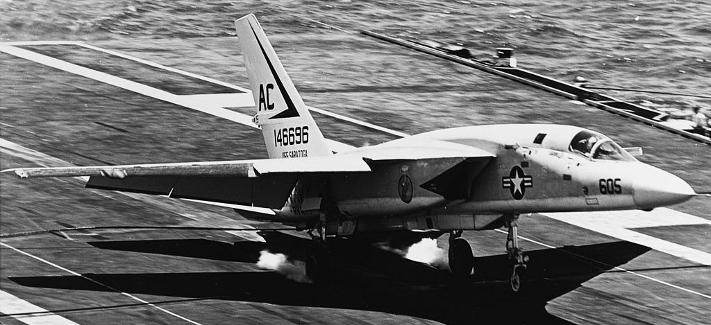 North American RA-5C Vigilante of RVAH-1 landing on USS Saratoga (CVA-60), 1 April 1969. (USN Photo)