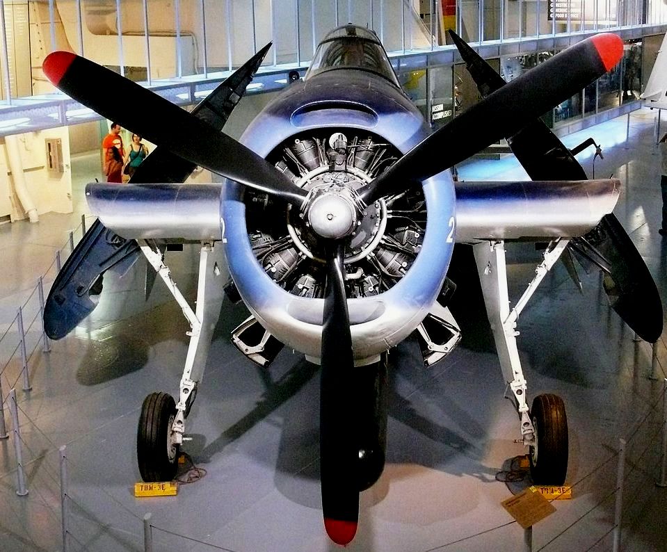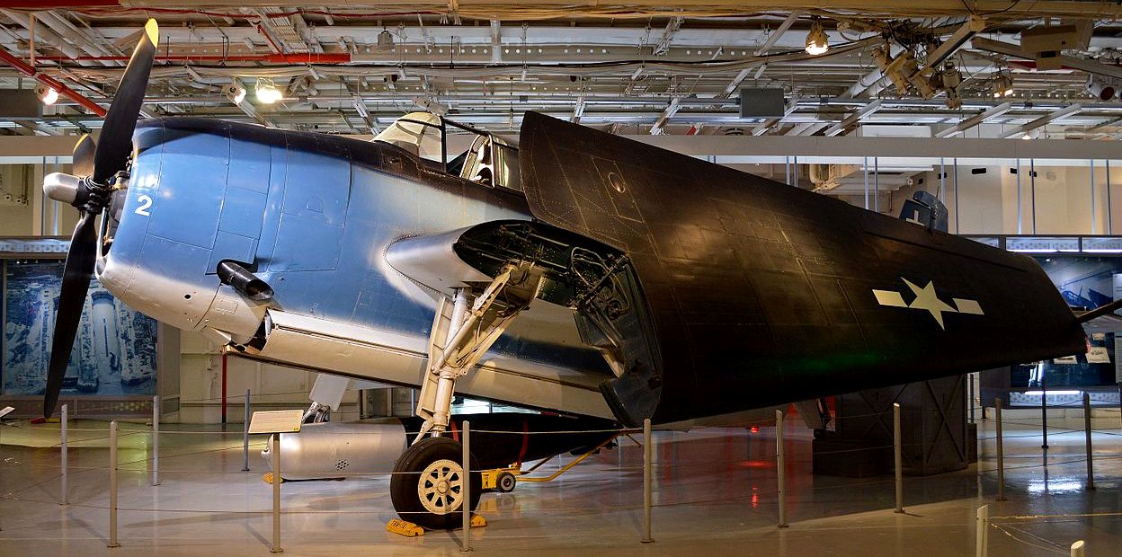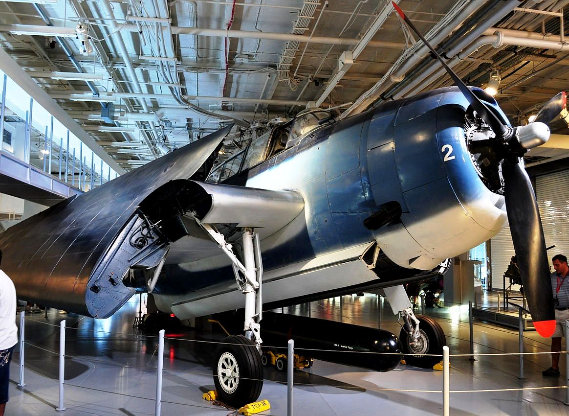 Goodyear FG-1D Corsair (BuNo. 92013), coded 66. Built in 1945, arrived at the museum on 1 Oct 2024. Painted to represent Lt Cdr Tom Blackburn’s VF-47 F4U-1A “Big Hog“. It is on loan from the National Naval Aviation Museum.