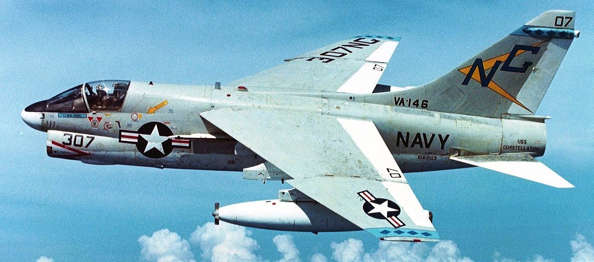 Navy Ling-Temco-Vought A-7E-5-CV Corsair II (BuNo. 156863) of Attack Squadron 146 (VA-146) “Blue Diamonds” in flight on 16 November 1974. (Robert L. Lawson, USN Photo)