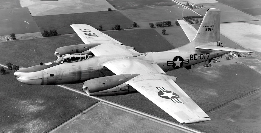 North American B-45A-5-NA Tornado (Serial No. 47-025) on a bomb run.