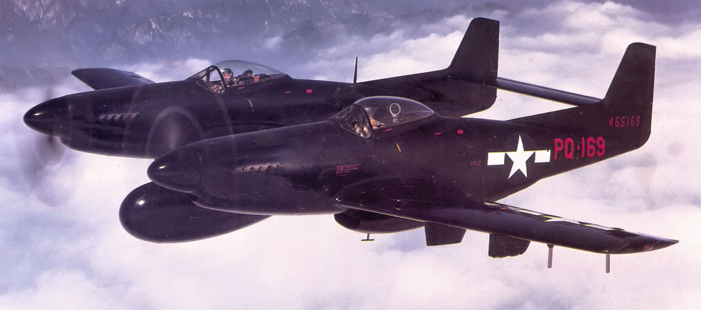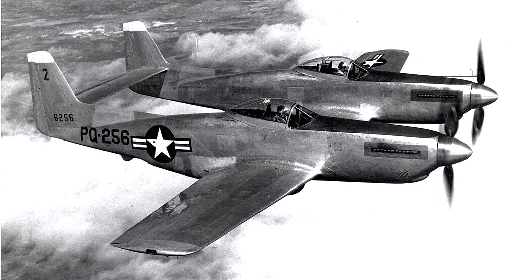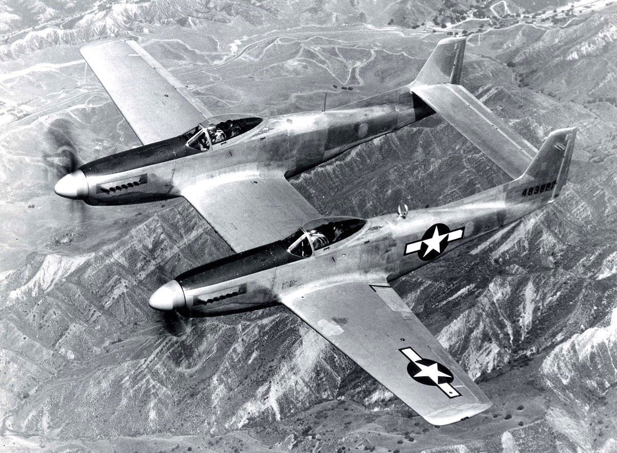 North American XP-82 Twin Mustang (Serial No. 44-83887) in formation wth a P-51D Mustang (Serial No. 44-84745).