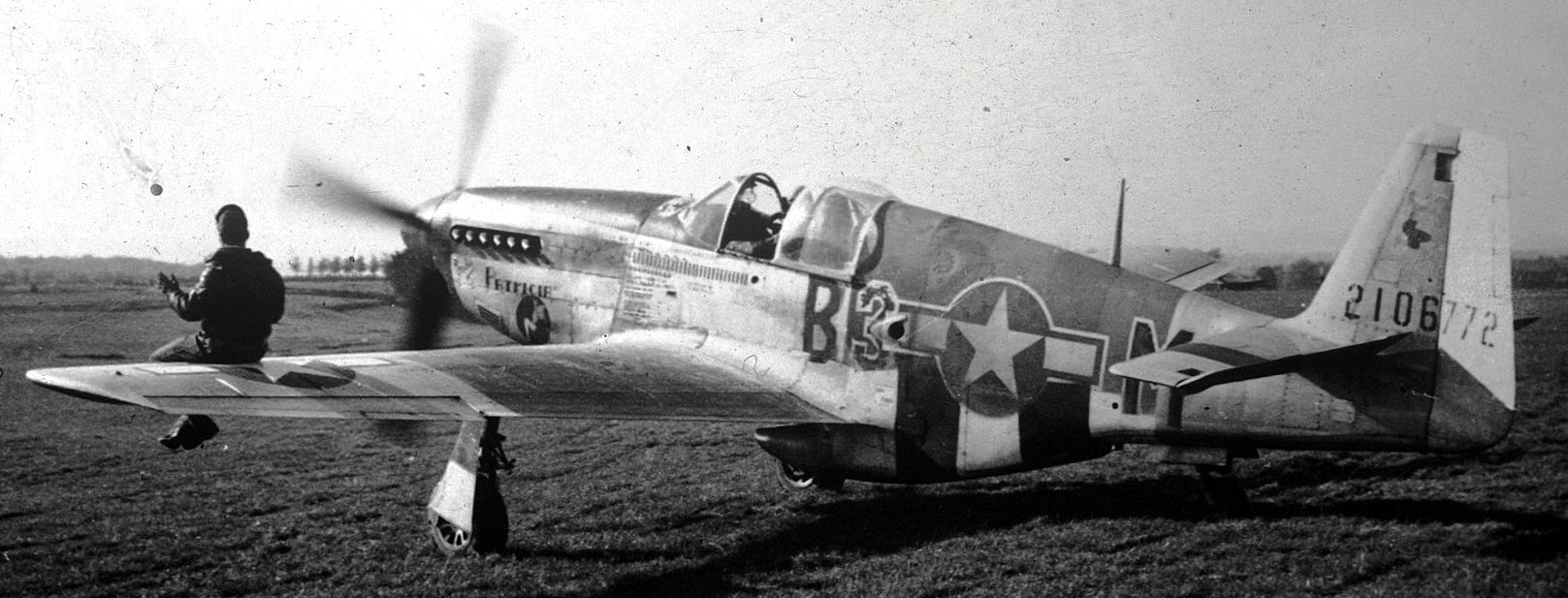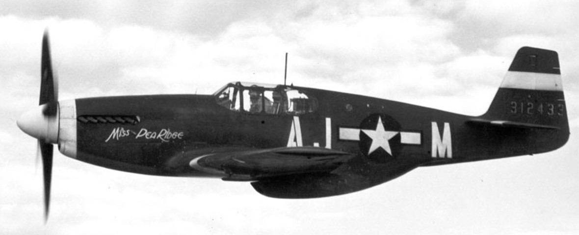 A USAAF North American P-51B-1-NA Mustang (Serial No. 43-12433), coded AJ-M, of the 356th Fighter Squadron, 354th Fighter Group, named “Miss Pea Ridge“, flown by Mack Tyner. 42-12433 was originally destined for the Royal Air Force as Mustang Mk. III (Serial No. FX905). It did not serve with the RAF but was returned to the USAAF on 30 December 1943.