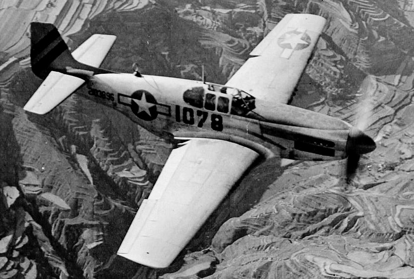 North American XP-51 Mustang (Serial No. 41-038), the first XP-51 delivered to the USAAF, wearing a cam paint scheme.