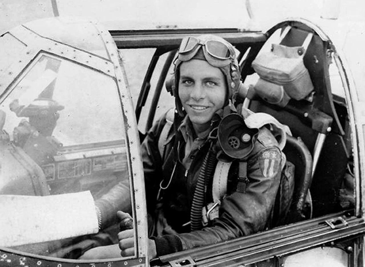 Donald S. Lopez sits inside the cockpit of his P-51C Mustang “Lope’s Hope III“, in Chiahkiang, China, 11 Nov 1944.