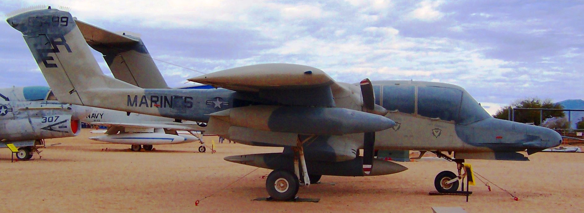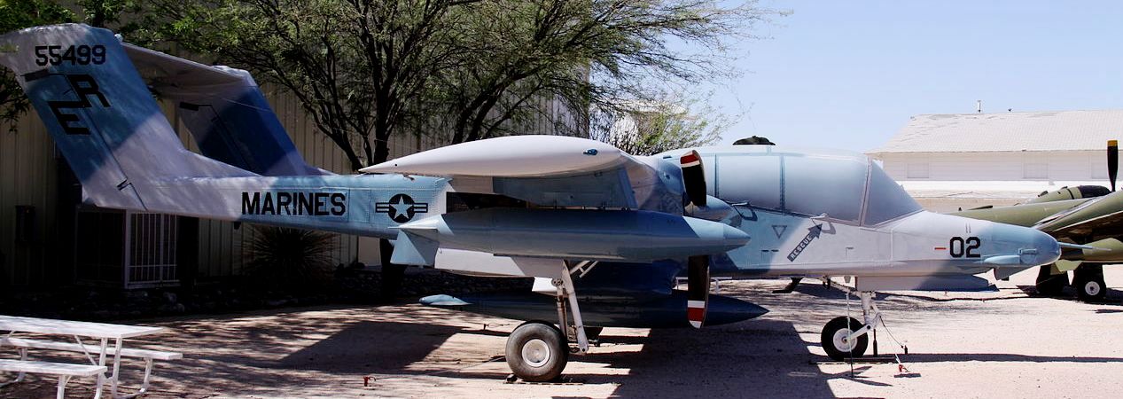 155499 – An OV-10D with Marine Observation Squadron 1 (VMO-1) markings is ondisplay at the Pima Air & Space Museum, adjacent to Davis-Monthan AFB inTucson, Arizona. It is on loan from the National Naval Aviation Museum and the National Museum of the Marine Corps.