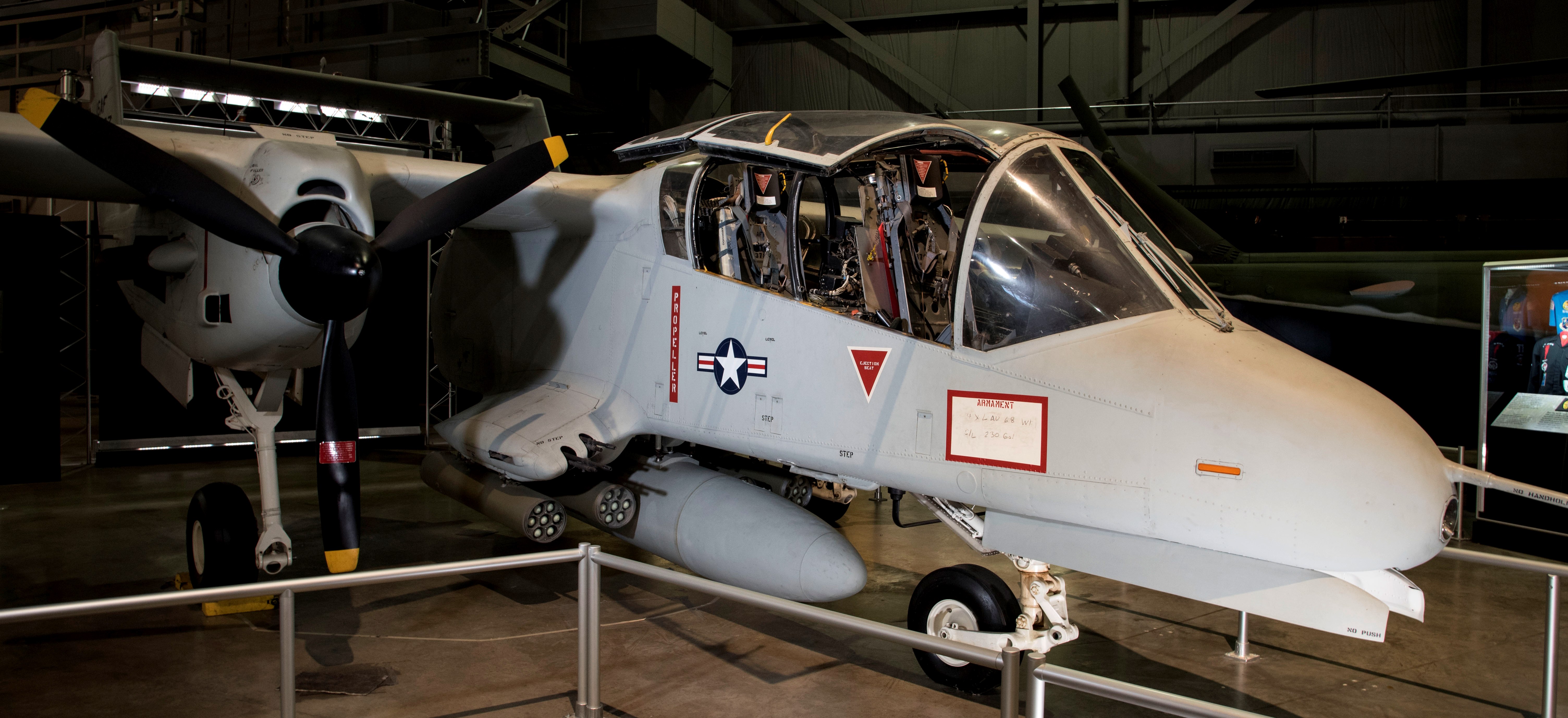 The production mockup of the OV-10A, c/nNAA-001, made in Columbus, Ohio, is on display at the Fort Worth Aviation Museum, Fort Worth, Texas, along with two other OV-10s.