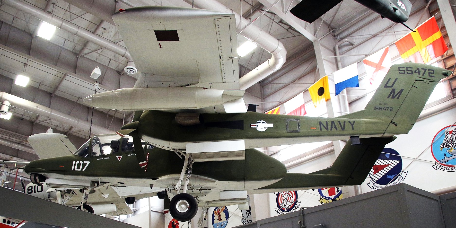 155472 – An OV-10D in Navy markings is on display at the National Naval Aviation Museum at NAS Pensacola, Florida. This OV-10 was received by the NNAM on 21 Oct 2004 when it was transferred from the National Museum of the MarineCorps at MCB Quantico, Virginia. BuNo 155472 was originally an OV-10A whichflew with VAL-4 during the Vietnam War, but was later transferred to the MarineCorps and upgraded to OV-10D standard in 1991. BuNo. 155472 is currently repainted and displayed in the scheme of VAL-4. Formerly on display at the Carolinas Aviation Museum.