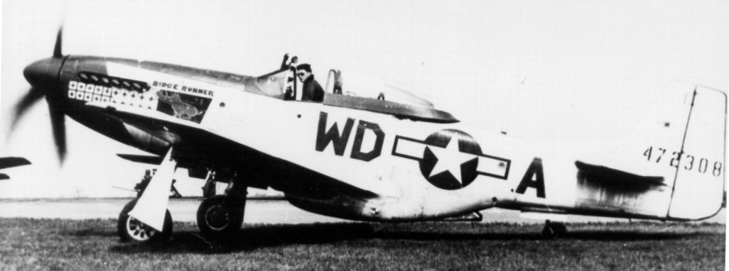 North American P-51D-20NA Mustang (Serial No. 44-72308), nicknamed “Ridge Runner III“, piloted by Pierce McKennon, c1944.