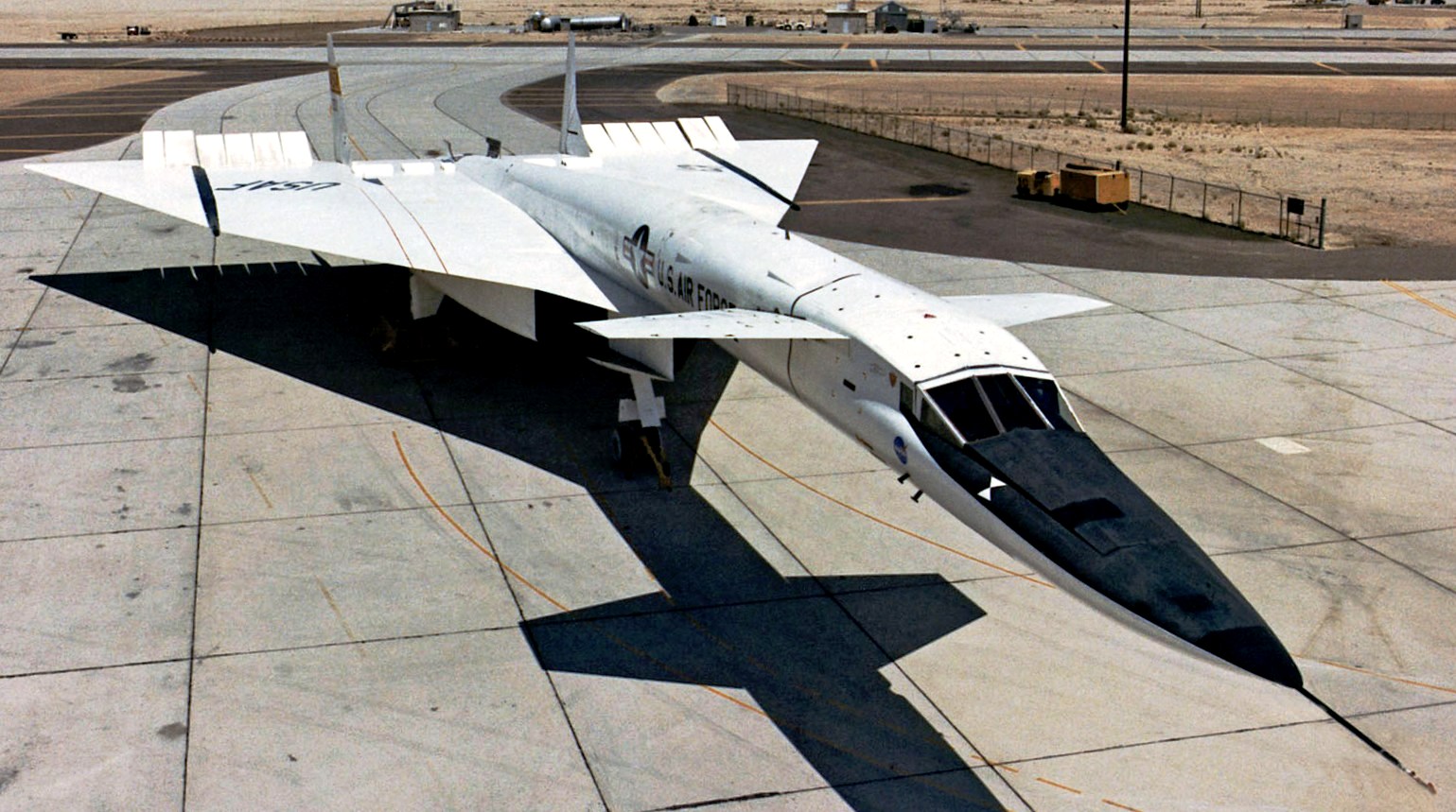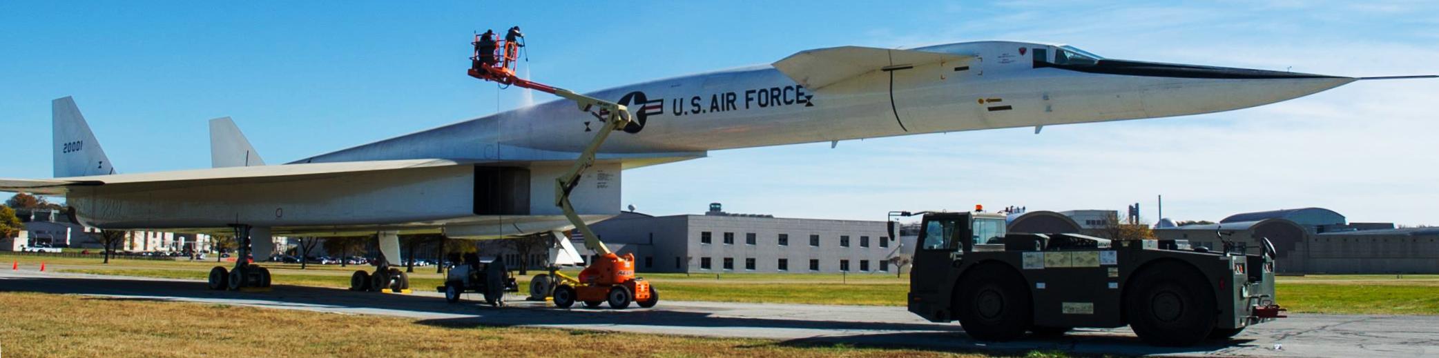 The XB-70 Valkyrie with her paint chipped off after her third test flight, where nearly 15% of the surface chipped off, 12 October 1964.