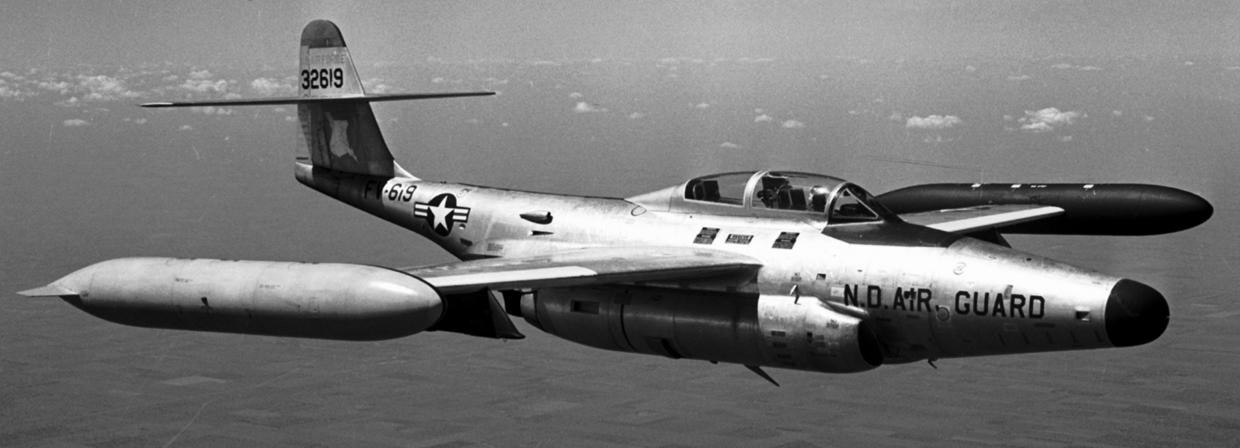 Northrop F-89J Scorpion fighter (Serial No. 53-2619) from the 178th Fighter Squadron, 119th Fighter Wing, North Dakota Air National Guard.