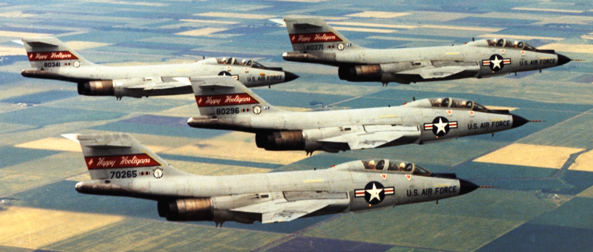 McDonnell F-101B Voodoo fighters from the 178th Fighter Squadron, 119th Fighter Wing, North Dakota Air National Guard, ca 1957.