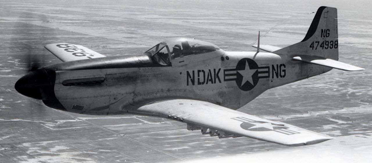 (USAF Photo)North American F-51D-30-NA Mustang fighter (Serial No. 44-74938) from the 178th Fighter Squadron, 119th Fighter Wing, North Dakota Air National Guard, ca. 1954.