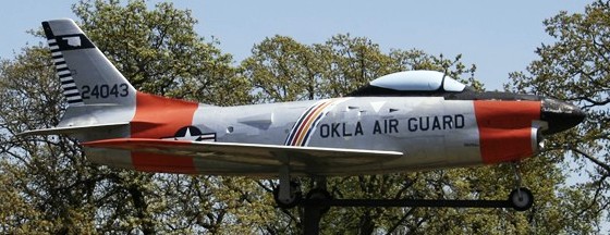 North American F-86D-55-NA Sabre (Serial No. 53-0566), modified to F-86L configuration, mounted on a pylon at the City of Mustang, Oklahoma veterans memorial.