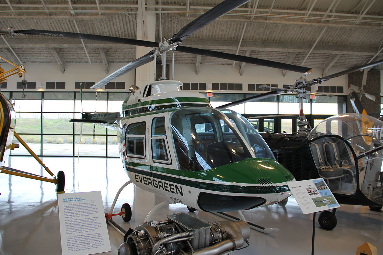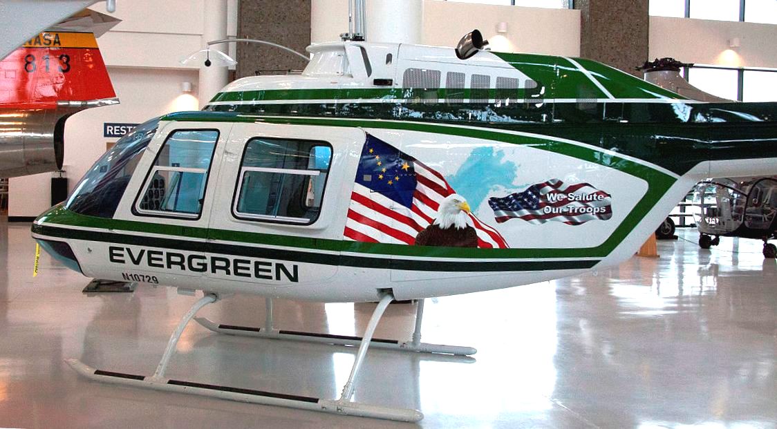 Bell 206B Jetranger Helicopter (Serial No.), Reg. No. N10729, Evergreen colours.