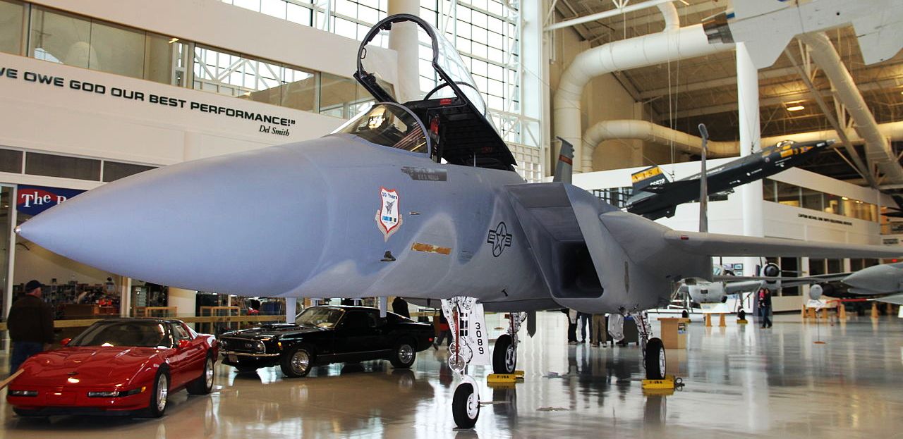 McDonnell Douglas F-15A Eagle (Serial No. 76-0014), C/N 193/A166, mounted on a pylon at McMinnville Municipal Airport.