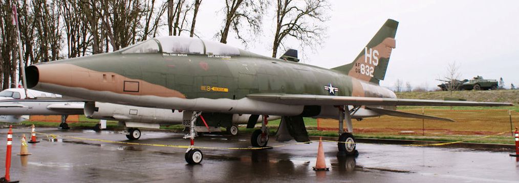 North American F-100F Super Sabre (Serial No. 56-3832), HS, C/N 243-108.  Painted in the colours of the 612th Tactical Fighter Sqn during the units time in Vietnam.