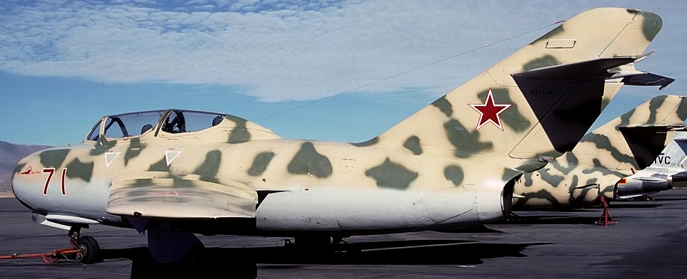Mikoyan Gurevich MiG-15UTI (Serial No. IA-242271), Shenyang J-5, 71, as it appeared 16 Nov 1989, later repainted as 22, Reg. No. N271JM.