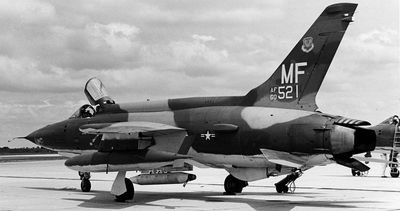 A U.S. Air Force Republic F-105D-10-RE Thunderchief (s/n 60-0474) from the 36th Tactical Fighter Wing at Bitburg Air Base, Germany, at RAF Sculthorpe, Norfolk (UK), in 1962. This aircraft was written off on 14 January 1964 after it crashed during landing approach at Bitburg. The pilot survived.