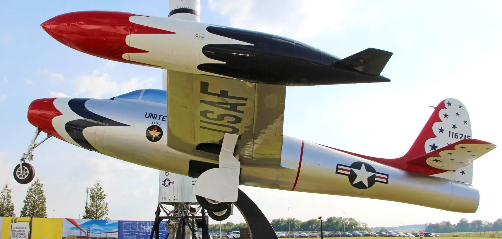 50-1143 – National Museum of the United States Air Force at Wright-PattersonAir Force Base in Dayton, Ohio. It was obtained from Robins Air Force Base,Georgia, in October 1963. It is marked to represent the F-84G flown by Col. Joseph Davis Jr., commander of the 58th Fighter-Bomber Wing in 1953.
