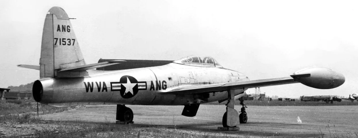 A U.S. Air Force F-84C-11-RE Thunderjet fighter (s/n 47-1537) from the 167th Fighter Squadron, West Virginia Air National Guard. The 167th FS flew the F-84C from 1950 to 1952.