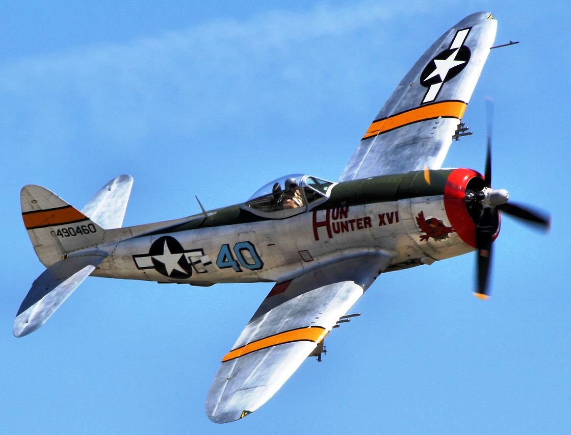 Republic P-47D Thunderbolt (Serial No. 44-90460), “Hun Hunter XVI“, based at Tennessee Museum of Aviation in Sevierville, Tennessee. Airworthy.