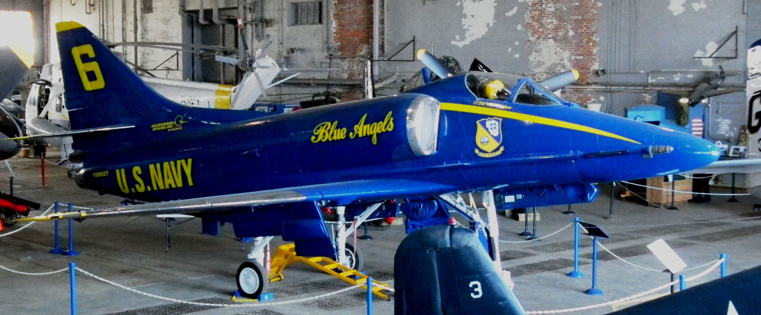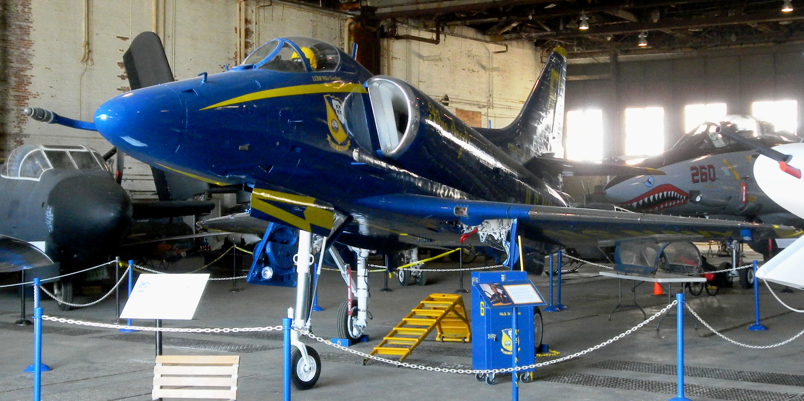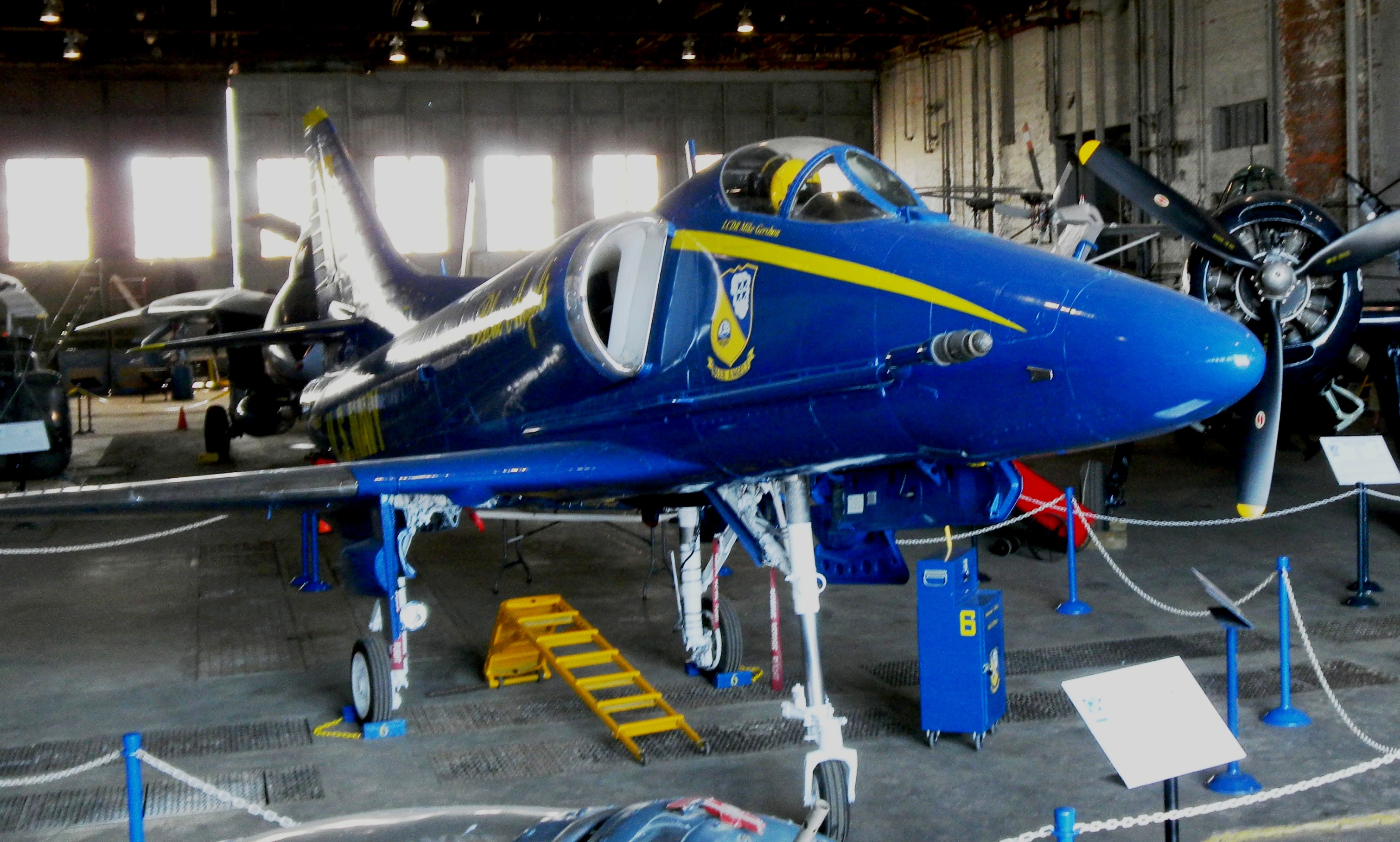 Douglas A-4F Skyhawk (BuNo. 155027), Blue Angels. This Blue Angel aircraft honors Lt. Cmdr. Mike Gershon who was killed at Niagara Falls, New York, on 13 July 1985, while preforming with the USN’s Blue Angels team. This aircraft is now with the Southern Museum of Flight, Birmingham, Alabama.
