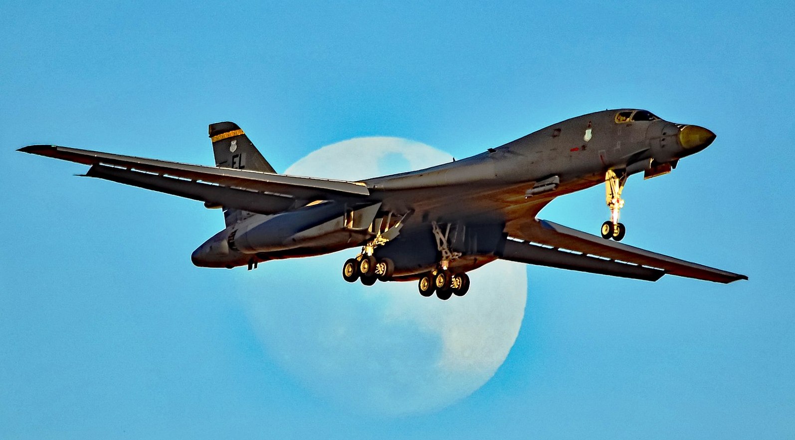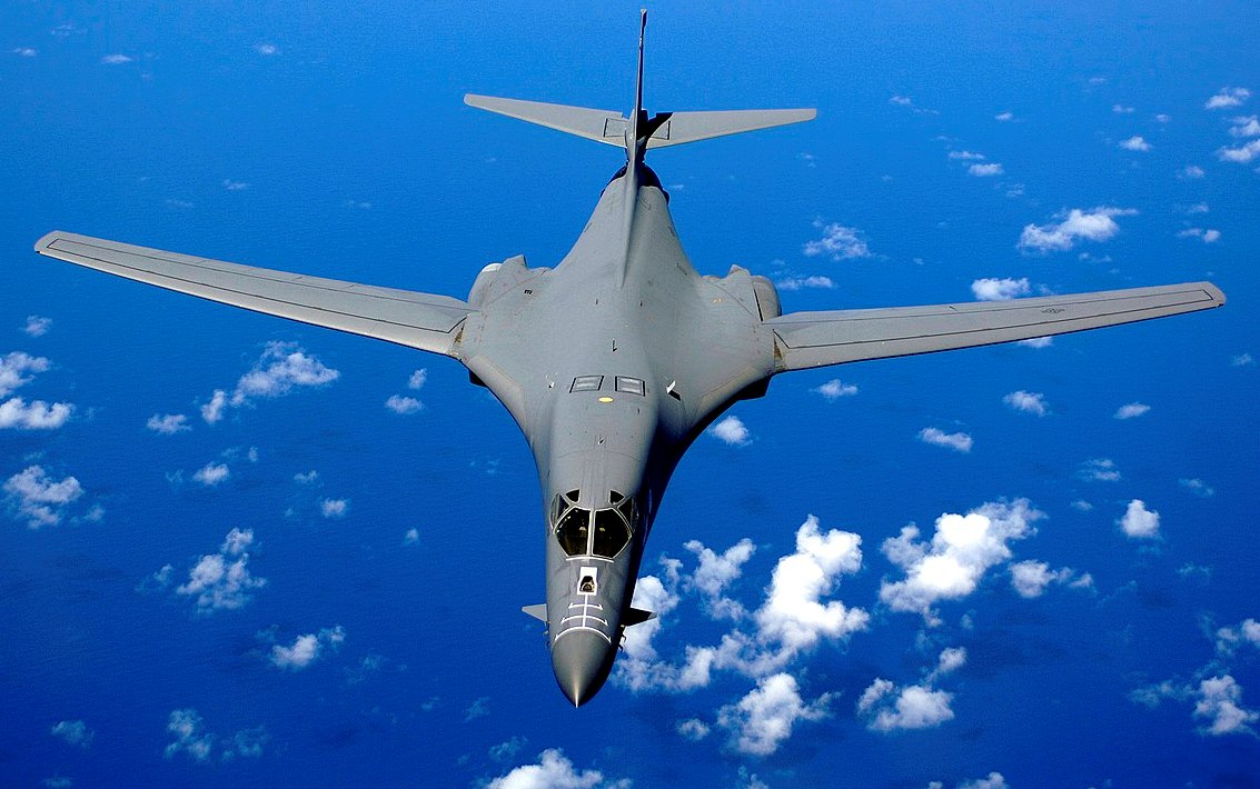 Rockwell B-1B Lancer from the 28th Bomb Wing, Ellsworth AFB, dropping away after air-to-air refueling.