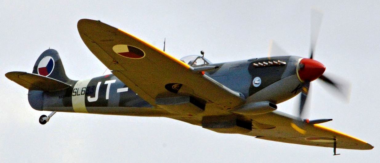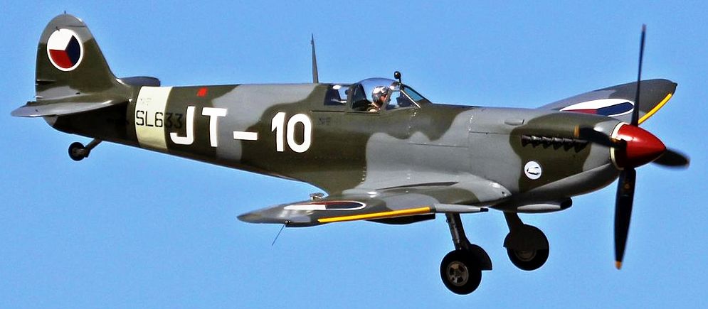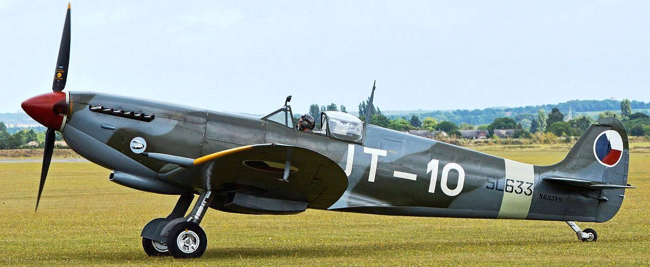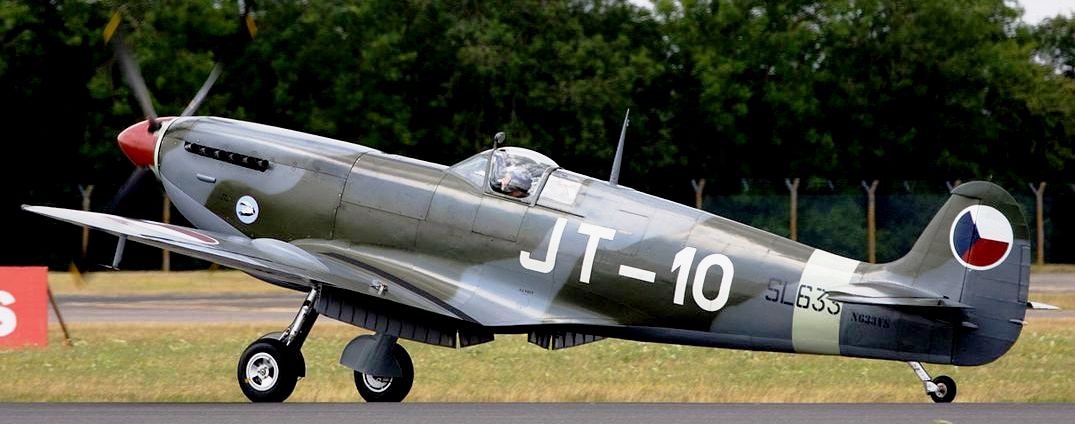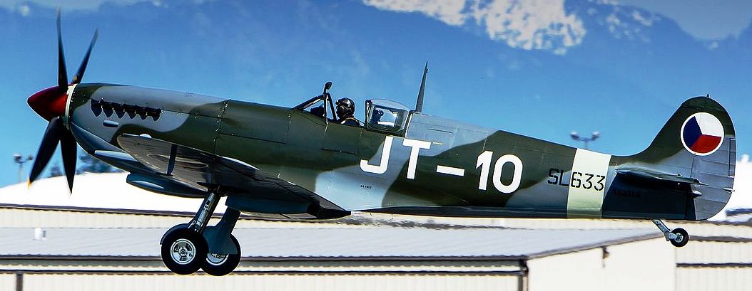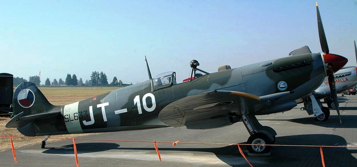 Supermarine Spitfire LF Mk. IXe (Serial No. SL633), Reg. No. N633VS. Airworthy. Owned by John Sessions with the Historic Flight Foundation and based at Paine Field, Washington. An historic machine that has served with the Royal Air Force, the Czechoslovakian Air Force, the fledgling Israeli Air Force, and finally the Burmese Air Force. It wears the markings of the Czechoslovakian Air Force as (Serial No. SL633), JT-10 of the 4th Air Regiment.