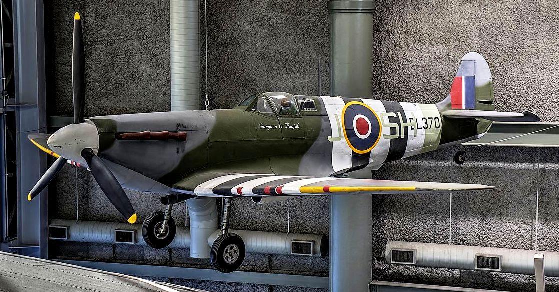 Supermarine Spitfire F Mk. Vb, RAF (Serial No. BL370), SH-J, presentation aircraft, “Gungaon II Punjab”. The fuselage is original but the wings are replicas without the radiator.
